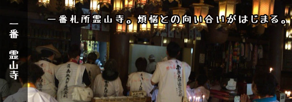 四国八十八ヶ所霊場の全行程はおよそ1460キロ、365里におよぶ。この霊場を札所番号の順に巡拝する遍路には、ここが「発願の寺」、「同行二人」の長い旅となる。縁起によると、聖武天皇(在位724〜49)の勅願により行基菩薩が開創された。弘仁6年(815)、弘法大師が四国の東北から右廻りに巡教された際、この地で衆生の88の煩悩を浄化し、また衆生と自らの厄難を攘はらって、心身の救済ができる霊場を開こうと37日間の修法をされた。その時、仏法を説く一老師をたくさんの僧侶が取り囲み、熱心に耳を傾けている霊感を得た。大師は、その光景が天竺(インド)の霊鷲山で釈迦が説法をしていた情景と似ていると感じとり、インドの霊山を和国(日本)に移す意味で「竺和山・霊山寺」と名づけられた。