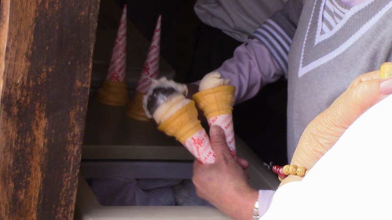 バスの乗り場にもどると、おいしそうなソフトクリームが・・うーん今回は写真だけ撮りました。