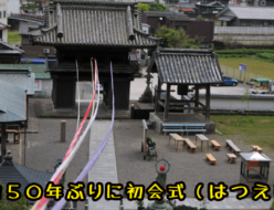 初会式(はつえしき) から、この糸はつながれているのだろうか、などと考えながら本堂へ平等寺では1965年ごろを最後に、初会式が行われなくなっていた。谷口真梁(しんりょう)副住職(36)が、大勢の稚児や参拝客であふれかえった昭和初期の初会式の写真を見て感動。